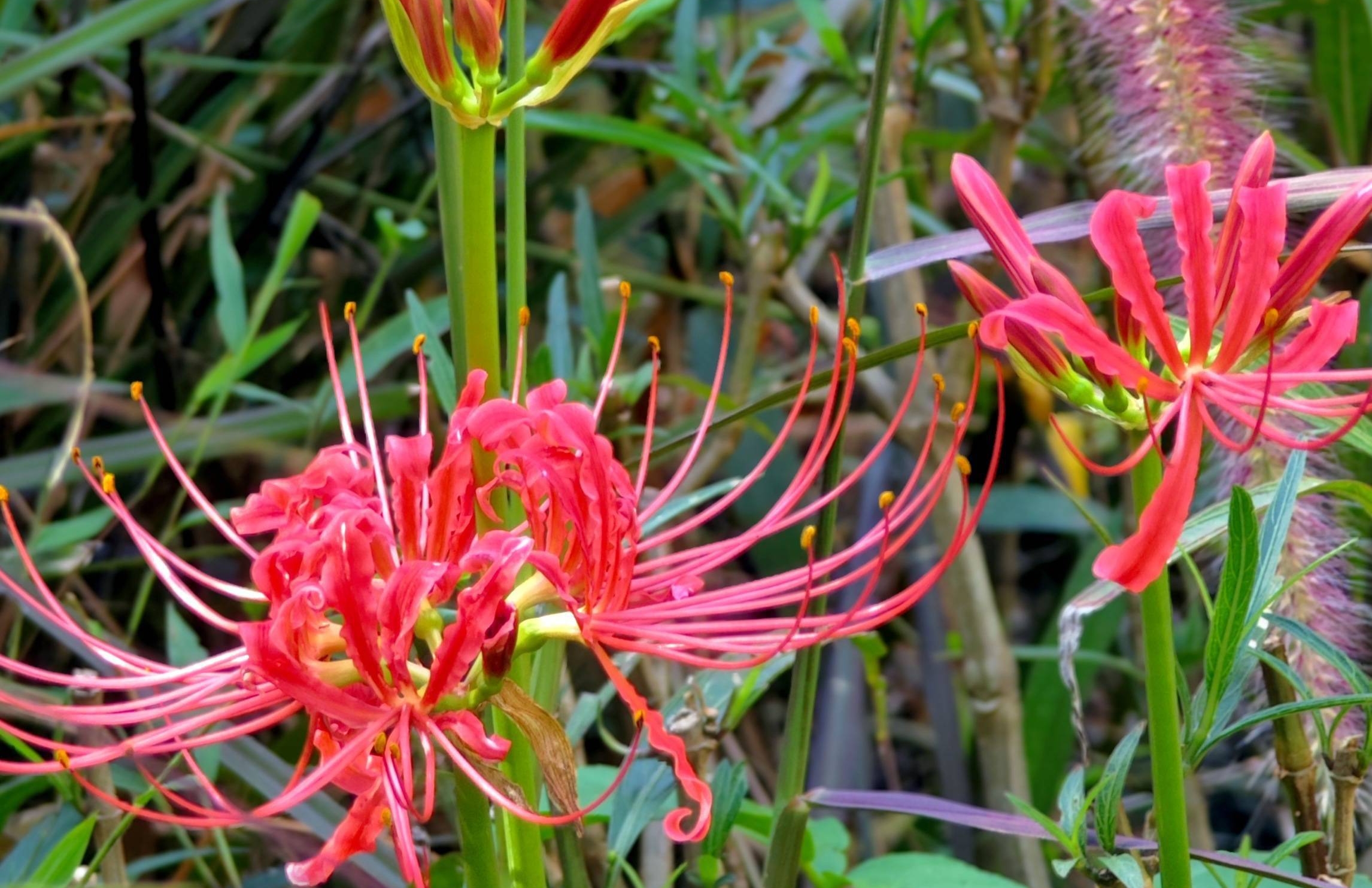近日,福州沙滩公园几株彼岸花悄然绽放,独特的花形与鲜艳的色彩引人注目。此花学名红花石蒜,因其花叶永不相见的生长特性,在民间素有“彼岸花”“地狱花”之称,常被视为神秘与凄美的象征。