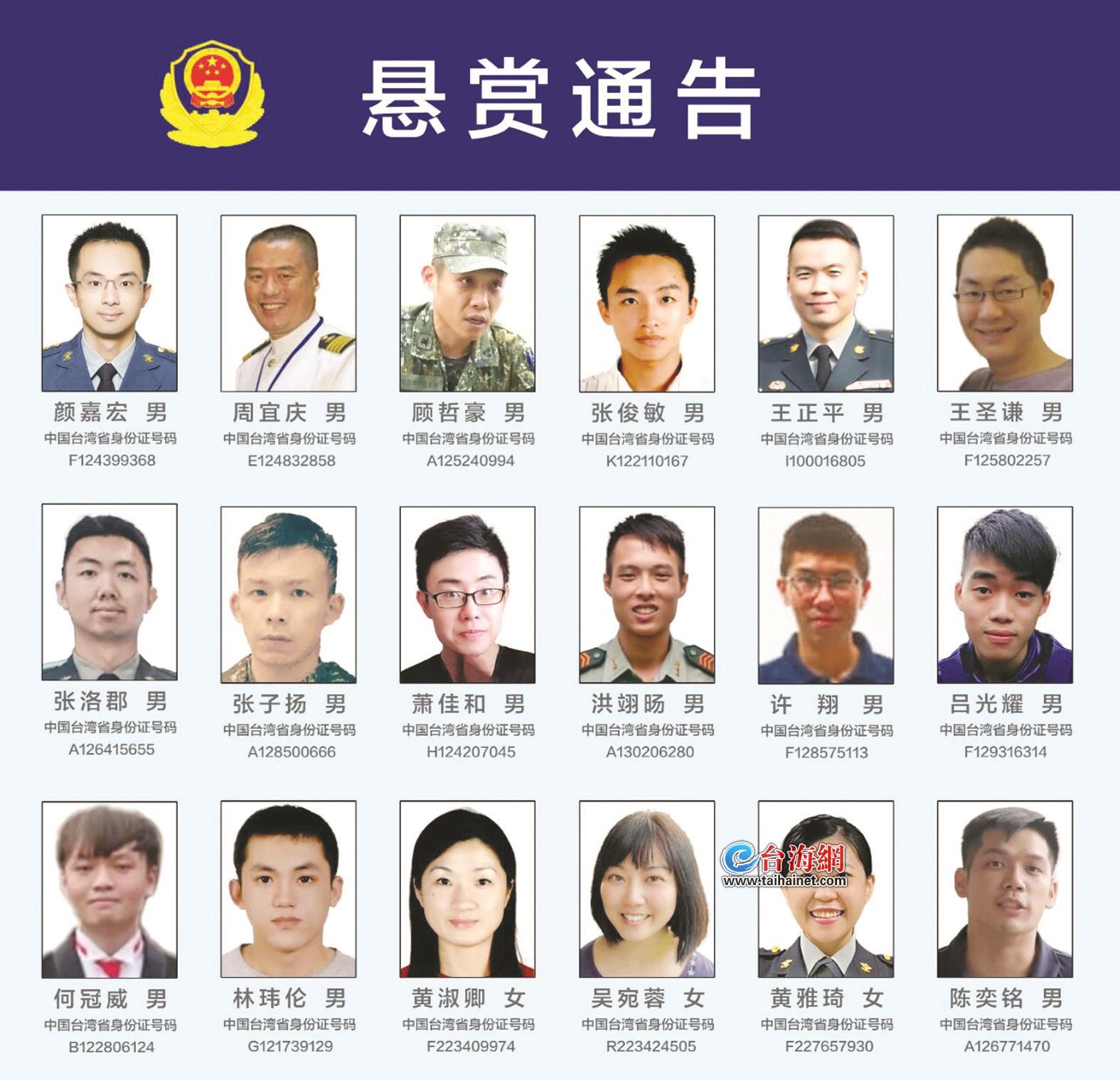 悬赏通告介绍,厦门市公安局接台湾民众举报称,台湾民进党当局利用架设反动宣传媒介、制作传播反动游戏等手段,对两岸民众进行鼓动、宣传,造成恶劣影响。经查,“心战大队”长期策划实施煽动分裂国家活动。为依法惩治危害国家主权和领土完整的犯罪行为,切实维护国家安全,该局决定悬赏征集颜嘉宏等18名“心战大队”核心骨干违法犯罪线索。