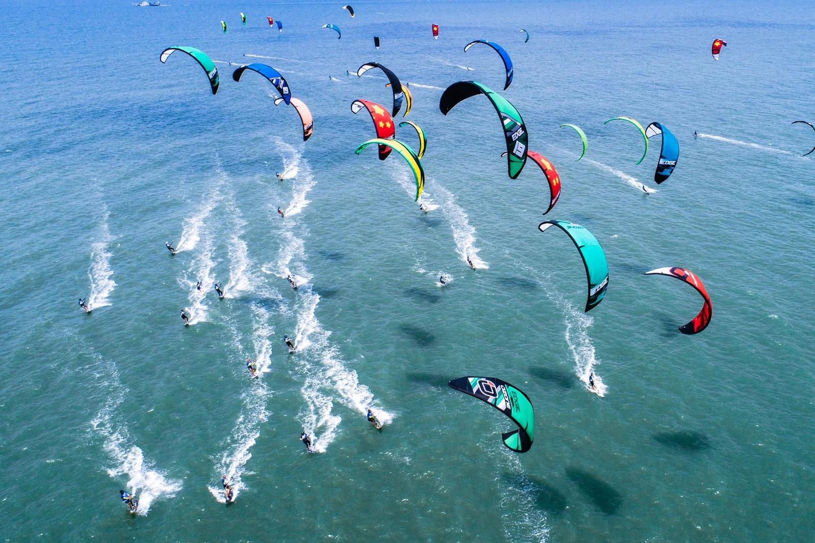 风筝冲浪是平潭四大核心赛事矩阵之一。图为在平潭举行的国际风筝冲浪空中花式邀请赛。(受访者供图)