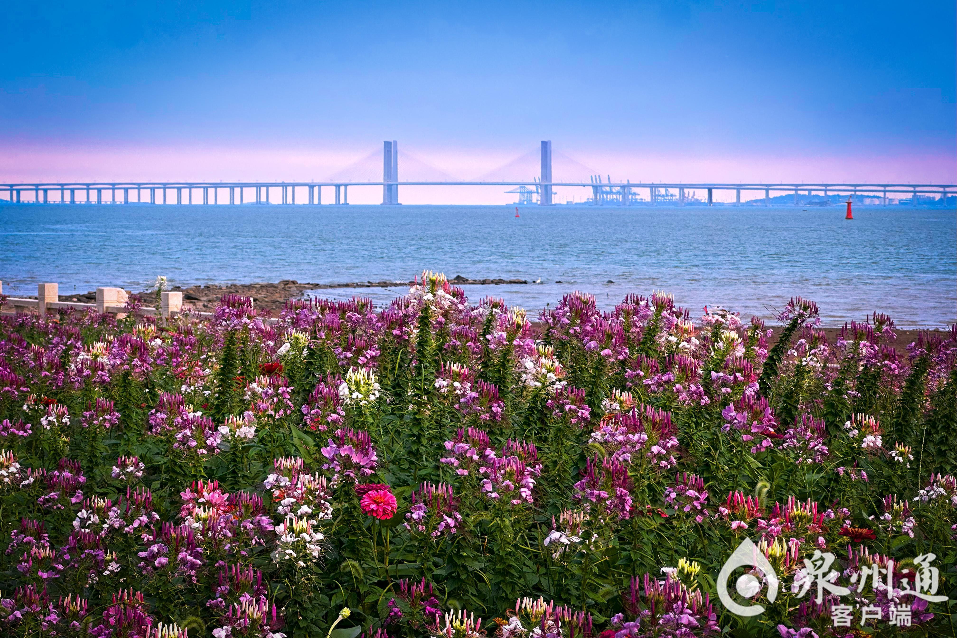 秋日,泉州中心市区丰海路滨海公园的花海在海风的吹拂下摇曳着,形成一幅色调明快的水彩画。
