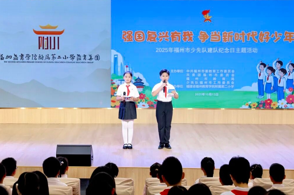 今年是中国少年先锋队建队76周年,是中国人民抗日战争暨世界反法西斯战争胜利80周年,为弘扬伟大爱国主义精神、伟大抗战精神,10月13日,由福州市委教育工委、共青团福州市委、福州市教育局、福州市少工委共同主办,福州教育学院附属第二小学承办的“强国复兴有我 争当新时代好少年”2025年福州市少先队建队纪念日主题活动在二附小举办。