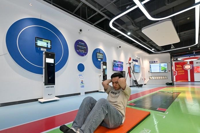 预摆、起跳、腾空、落地,一连串动作后,AI体测小站就生成了立定跳远测试报告,不仅有成绩,还有AI动作分析与建议。一旁的AI-mini(迷你)小站,能够利用校园碎片化场地搭建“微操场”,让孩子们在课间开启体育竞赛;AI立柜式一体机打造“教、学、练、测、评”全流程的智慧操场,适应多种运动场景和模式。