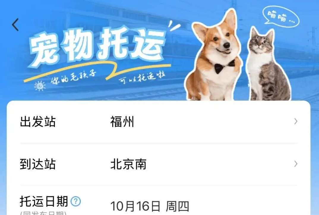 旅客可通过铁路12306客户端“宠物托运”功能查询对应车次,提前购买车票并线上预约同车托运宠物服务。
