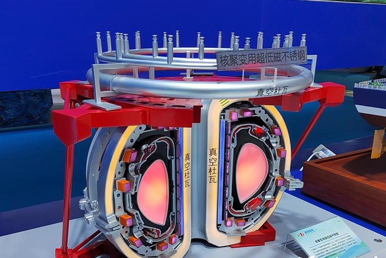 酒钢集团在展位上别出心裁地摆放了一个“人造太阳”——全超导托卡马克核聚变实验装置模型。“我们带它来,是为了展示我们的产品——核聚变用超低磁不锈钢。”工作人员说,这种钢材产品相对磁导率值低于1.05,远低于相关规范低于1.2的要求,耐蚀性能优异,完全满足聚变装置对耐强中子辐照、抗亿级高温腐蚀的核心需求,成功应用于中国科学院等离子体物理研究所磁体测试杜瓦项目,为“人造太阳”全超导托卡马克核聚变实验装置提供了关键材料支撑。