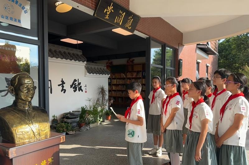在观澜小学,红色基因不只是一处名称,更存在细节里。图书馆旁的吴石介绍墙图文并茂,是师生驻足学习的“红色打卡地”;依托图书馆,学校以吴石本名“吴萃文”成立“萃文读书会”,定期通过读书沙龙、美文分享、角色朗读等形式,让师生汲取知识,传承红色基因。此外还有以吴石的字“虞薰”命名的“虞薰讲解团”,其成员都是经过严格选拔、培训的学生。看到记者来访,孩子们立即生动地介绍起吴石的革命事迹。