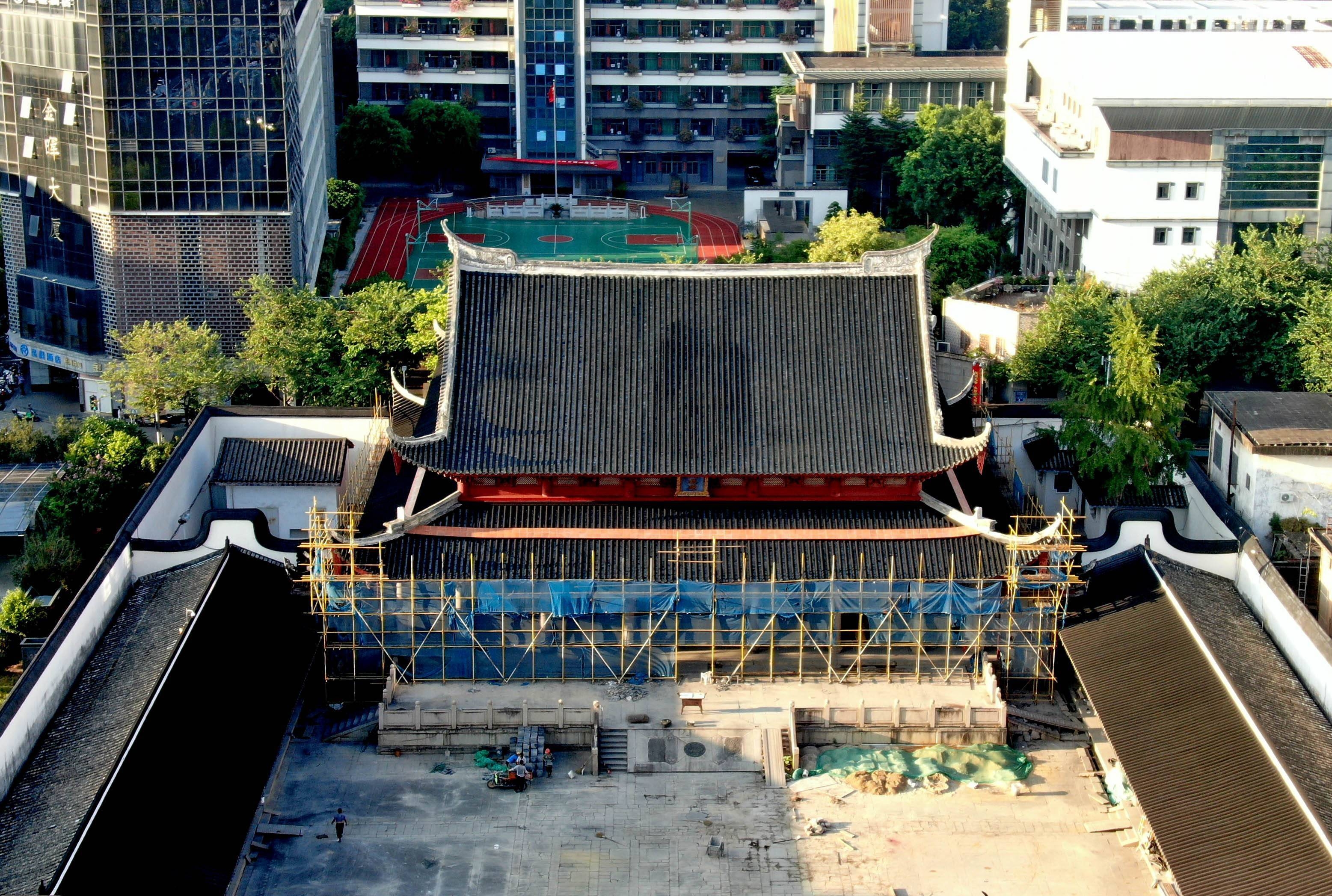 文庙的主殿脚手架尚未拆除