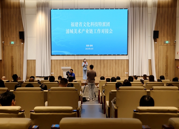 会上,还举行福建省文化科技特派团(浦城美术产业链)授牌;特派团负责人、福州大学厦门工艺美术学院副院长张健汇报美术产业链工作对接进展情况和下一步工作安排。