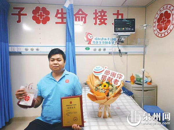 他特意为那位少年写下鼓励的话语:“我提供的只是一颗‘种子’,让它生根发芽的是你强大的生命力……请你带着这份来自无数人的爱和祝福,勇敢地、精彩地活下去!”此刻,他多了一个光荣的身份——福建省第547例、泉州市第52例非亲缘造血干细胞捐献者。