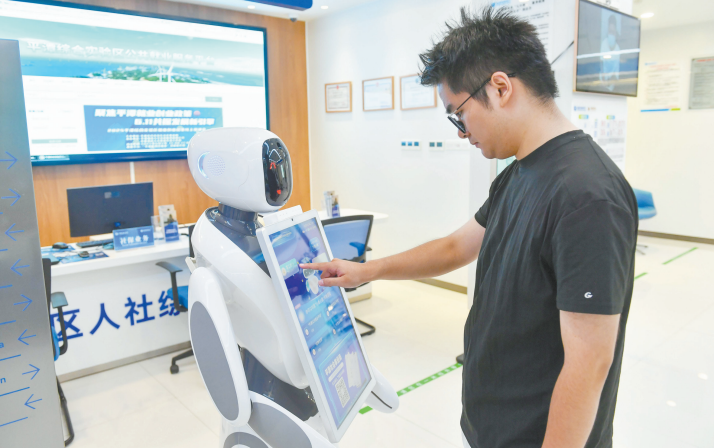 “您好,根据您的需求,为您筛选以下岗位……”话音刚落,“小鱼”胸前的屏幕便弹出相关岗位、扶持政策等信息,从工作内容到薪资待遇,一目了然。很快,林金花就选中了一份家政工作,后续面试也顺利通过。