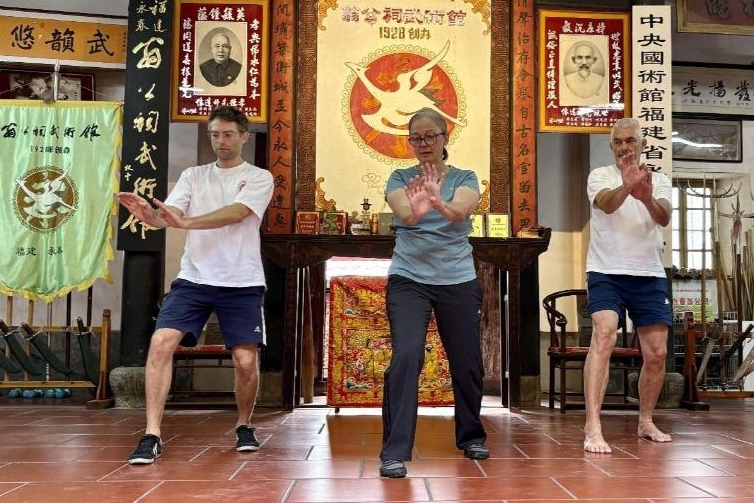 带队的魏玉荻今年60岁,这已是她第十五次踏上永春的土地,此次她还带来4名新弟子。“2012年第一次来永春学拳,至今已有13年了,这次来我学会了以前不敢尝试的双刀。”魏玉荻笑着分享,她每天都会练习白鹤拳,最初学习的是空手道,后来她的师傅哈奇了解到空手道源于白鹤拳,便决定带弟子来中国探寻本源,“哈奇老师认为学习中国传统武术就要探寻本源,白鹤拳的灵魂和根在永春。”带着这份信念,魏玉荻坚守着这份跨国界的文化热爱。