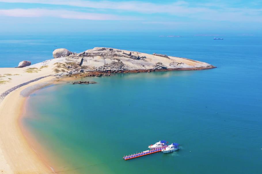 它那健硕颀长的身躯,悠然地没入碧波之中,宛如一位卸甲归来的老者,正将半生的风霜浸入温润的海水,静静聆听着浪花一遍又一遍地吟唱着古老而神秘的歌谣。晨光洒下,为它镀上一层璀璨的金辉;暮霭降临,又为它披上一袭梦幻的紫纱。那长达330多米的躯体,并非嶙峋突兀、棱角分明,而是历经风与海亿万年的耐心雕琢,将最坚硬的花岗岩打磨出了圆润而雄浑的曲线。它的胸膛宽阔得如同三山五岳,仿佛能容纳四海风云,笑看云卷云舒,荣辱不惊。这份豁达与从容,也铸就了麒麟岛百姓宽广的胸怀,以及勇往直前、无坚不摧的坚韧意志。