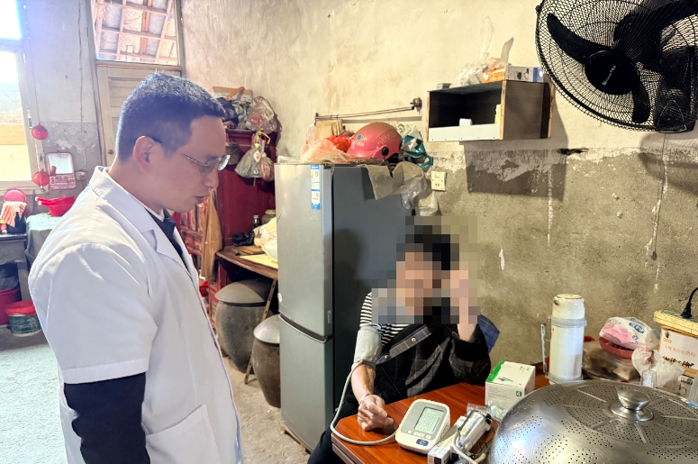 在夏奶奶家中,郑日耀接过注射器仔细检查,很快找到了症结:“奶奶,注射器没问题,是针头堵了,换一个就能用。”问题解决后,他又熟练地为老人测量了血压、血糖,并用听诊器检查心肺功能。“奶奶喘得有点厉害,病情较前虽有好转,但仍不稳定,不排除急性发作可能”郑日耀微微蹙眉建议道,“必要时需去市医院再住院调理一段时间。”