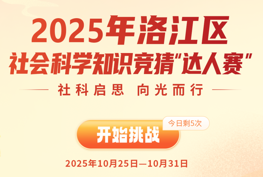 闽南网10月25日讯(闽南网 姚珊红 通讯员 郑美玲)社科启思,向光而行。10月25日,2025年洛江区社会科学知识竞猜“达人赛”线上活动启动,并延续至10月31日。