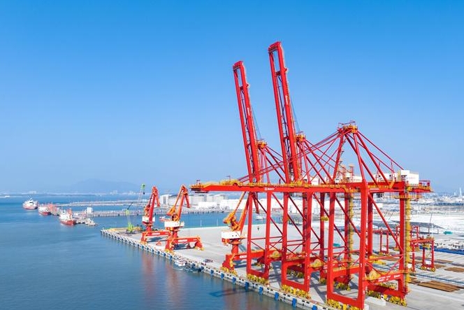 据了解,经综合评估,验收组一致认为,福州港江阴港区壁头作业区8号、9号泊位(融港码头)各项基础设施与查验监管设施均已按标准建成投用,配套规章制度体系健全完善,符合口岸对外开放要求,同意通过省级验收。据悉,该码头是福州港首个实现“零排放”运营、采用全电动作业设备的码头,在绿色港口建设领域树立标杆。(记者 王光慧/文 林双伟/摄)
