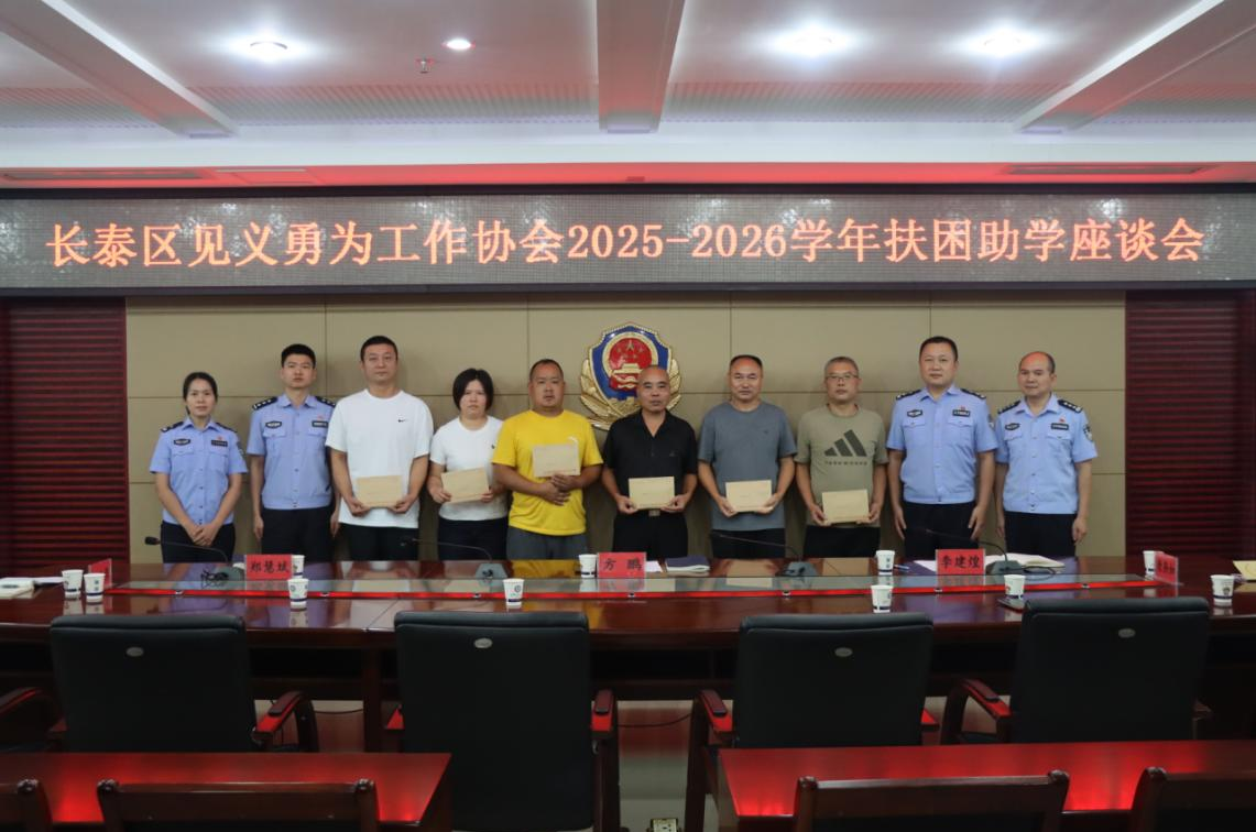 为弘扬见义勇为精神,切实关爱见义勇为人员及家庭,10月24日下午,长泰区见义勇为工作协会隆重召开2025-2026学年扶困助学座谈会暨助学金发放仪式。长泰公安分局党委副书记、政委方鹏,长泰公安分局党委委员、政工室主任李建煌,副局长郑慧斌,协会主要负责同志及受助对象家属代表出席了活动。