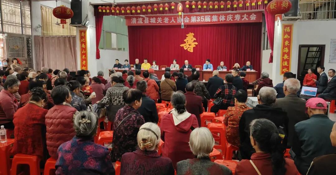 10月25日,清流县城关老人协会举行大会、文艺演出和踩街活动,为百岁和喜逢60、70、80、90岁的476位寿星集体庆寿,让他们度过一个快乐祥和的寿辰。