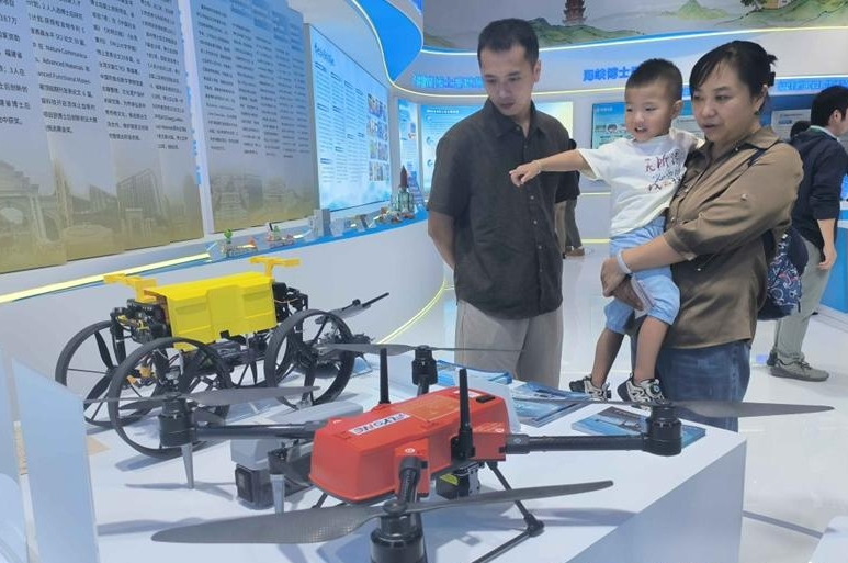 无人机吸引参观者。记者 颜学辉 摄