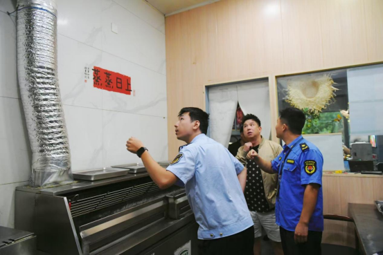 检查过程中,各部门依据自身职责,对商圈附近的餐馆、烧烤经营场所进行了全面“体检”。执法人员现场围绕油烟净化设备的安装、运行、定期清洗记录以及排烟管道的合规性等关键环节,进行了认真核查,确保不漏细节,杜绝问题隐患。同时,针对检查中发现的清洗记录登记不规范等问题,执法人员现场下达整改要求,要求相关商户立即整改,并将通过后续回访复查,确保整改到位,防止问题反弹。