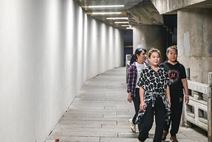 下穿通道内完善了照明系统。记者 陈暖 摄