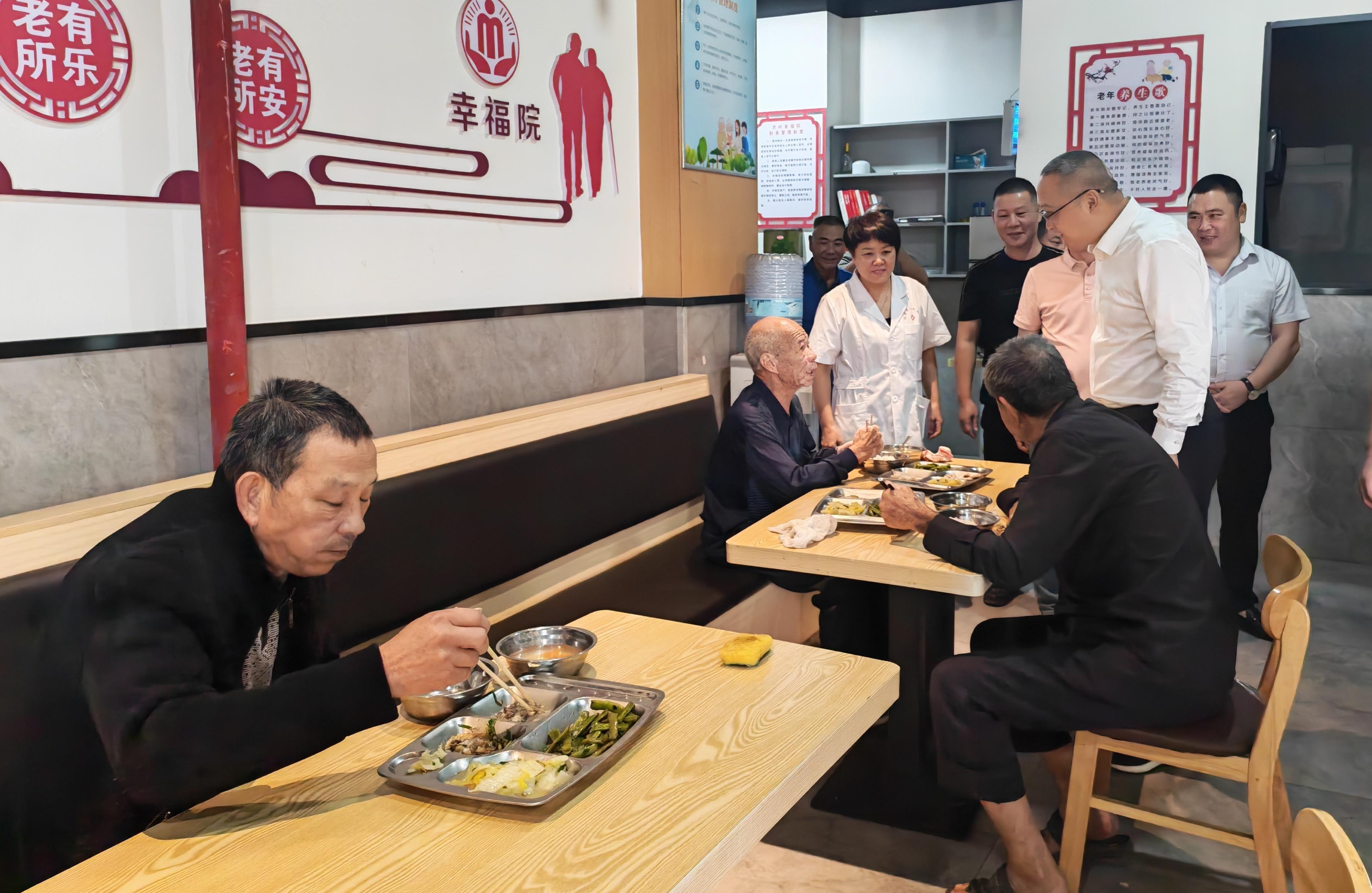活动当天上午,漳湾镇政府主要领导与小塘社区的工作人员一同前往小塘花苑内的“孝老食堂”,进行实地走访慰问。在食堂内,他们详细询问了食堂近期食材的采购情况以及菜品的种类搭配,并主动与正在用餐的老人们沟通交流,认真倾听他们对饭菜口味、分量和服务质量的反馈。“这里的饭菜既软和又合口,我和老伙伴们每天都来,彻底解决了吃饭的难题,社区真是把好事做到了我们的心坎里!”正在就餐的阮大爷放下碗筷,笑容满面地向工作人员分享自己的感受。