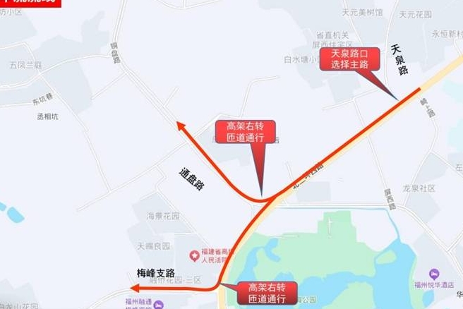 为提升道路通行效率,恢复梅峰支路双向通行功能,自11月1日起,福州城投集团所属市城乡建总权属市政开发公司将正式对梅峰支路、铜盘路口两处临时匝道桥及梅峰支路临时天桥进行封闭拆除施工,整体工期预计两个月。