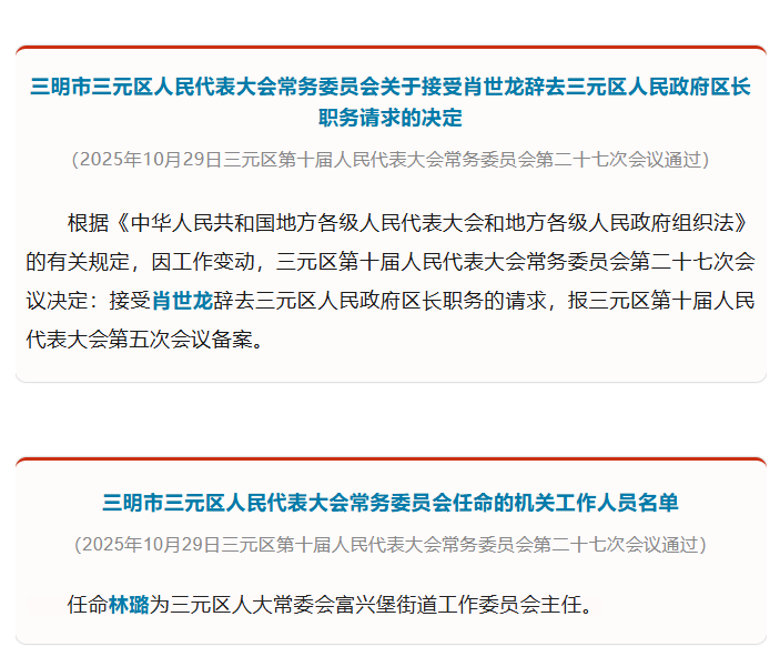 三元区最新人事任免!