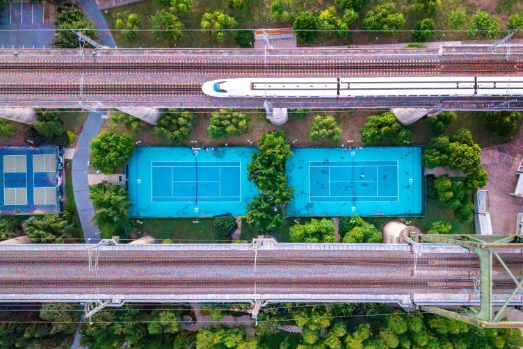 8月16日,福州榕华网球公园,因其位于高铁高架桥下的独特地理位置,吸引了不少网球爱好者前来运动打卡。 陈天博 摄