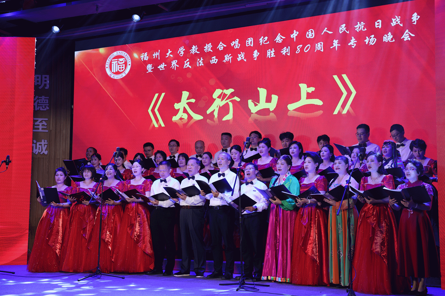 激昂旋律回望烽火岁月,深情吟唱传承民族精神。10月30日晚,福州大学教授合唱团“铭记历史 珍爱和平”纪念中国人民抗日战争暨世界反法西斯战争胜利80周年专场晚会激情唱响。活动由福州大学美育中心承办,福州大学党委宣传部、人文社会科学学院联合协办。教授们以艺术致敬历史,用歌声、乐声与诗篇传达“珍爱和平”之音。