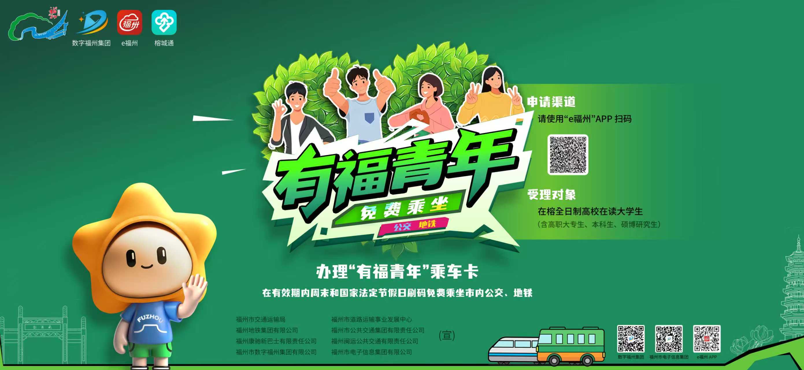 在榕高校学子的出行福利来啦!由福州市交通运输局指导、数字福州集团所属福州市电子集团有限公司打造的“有福青年”乘车卡申领系统,已于10月25日正式在“e福州”App“青榕工程”上线,今后符合条件的青年学子,周末、节假日出门乘公交地铁能享免费福利!