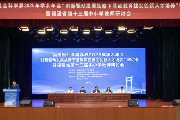 10月31日至11月2日,福建省社科界2025年学术年会“创新驱动发展战略下基础教育拔尖创新人才培养”研讨会暨福建省第十三届中小学教师研讨会在晋江市第一中学举行。本次研讨会由福建省社科联主办,福建教育学院、福建省教育学会、福建省陶行知研究会、福建省家庭教育研究会联合承办,晋江市教师进修学校、晋江市第一中学协办。研讨会聚焦当前基础教育改革的关键议题,致力于为加快建设高质量基础教育体系,奋力推进中国式现代化福建实践贡献智慧和力量。
