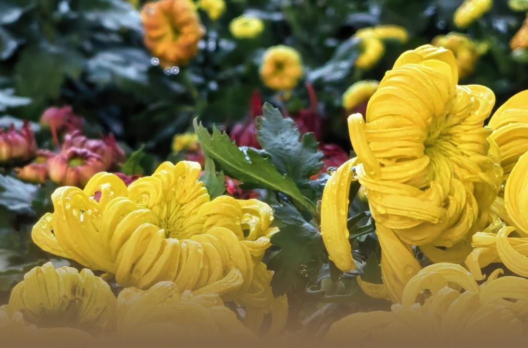 宋淳熙《三山志》里仔细记载了福州的菊花:味甘的“真菊”、像茼蒿的“广菊”、模样可爱似婴儿的“孩儿菊”,还有六月就开花的“滴滴金”。可见早在八百多年前,福州人就已经在品评、欣赏菊花了。