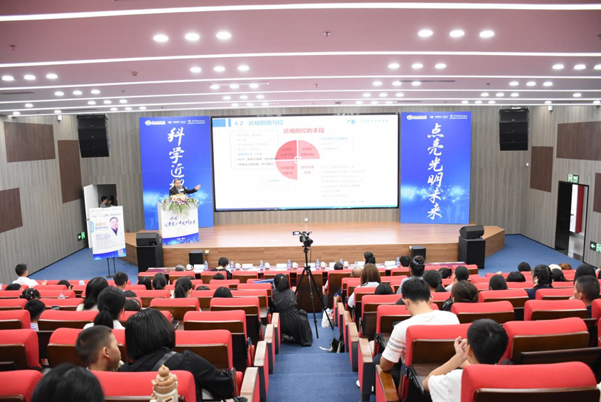 现场,赵院士向家长和孩子们介绍了目前我国青少年的近视现状,并用生动有趣的图片,围绕“如何科学防控近视”进行授课。对于家长们普遍关心的近视防控问题,赵院士也一一进行耐心解答,拨开了萦绕在家长心头的迷雾。讲座中还设置了互动环节,赵院士重点纠正孩子们的用眼习惯。他还强调,近视防控的重点在于“防”与“控”,要将防线前置,从源头抓起。