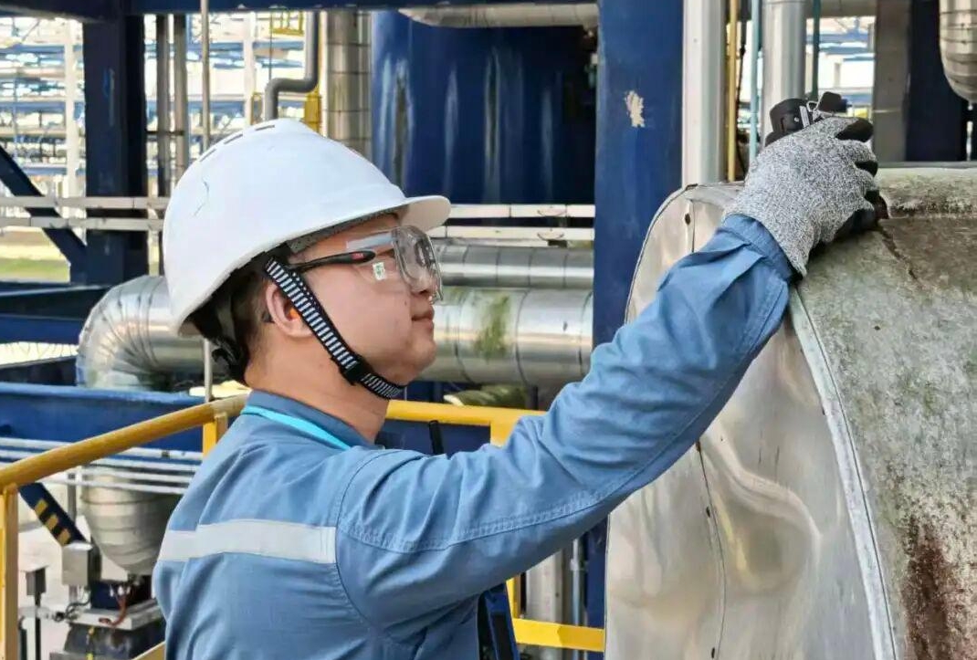 当日清晨6时50分,外操王骠如往常一样,攀上60余米高的C-301脱甲烷塔顶进行巡检。突然,随身携带的可燃气体报警仪发出警报。王骠立即按照“一听、二看、三摸、四查”的标准巡检流程进行复核,发现塔顶人孔处保温层存在异常结冰现象,并持续散发冷气。他随即通过巡检终端一键报警,同时使用防爆相机拍摄现场情况,实时上传至分部安全管理平台,为后续应急决策提供精准信息支撑,从源头守住岗位安全责任线。