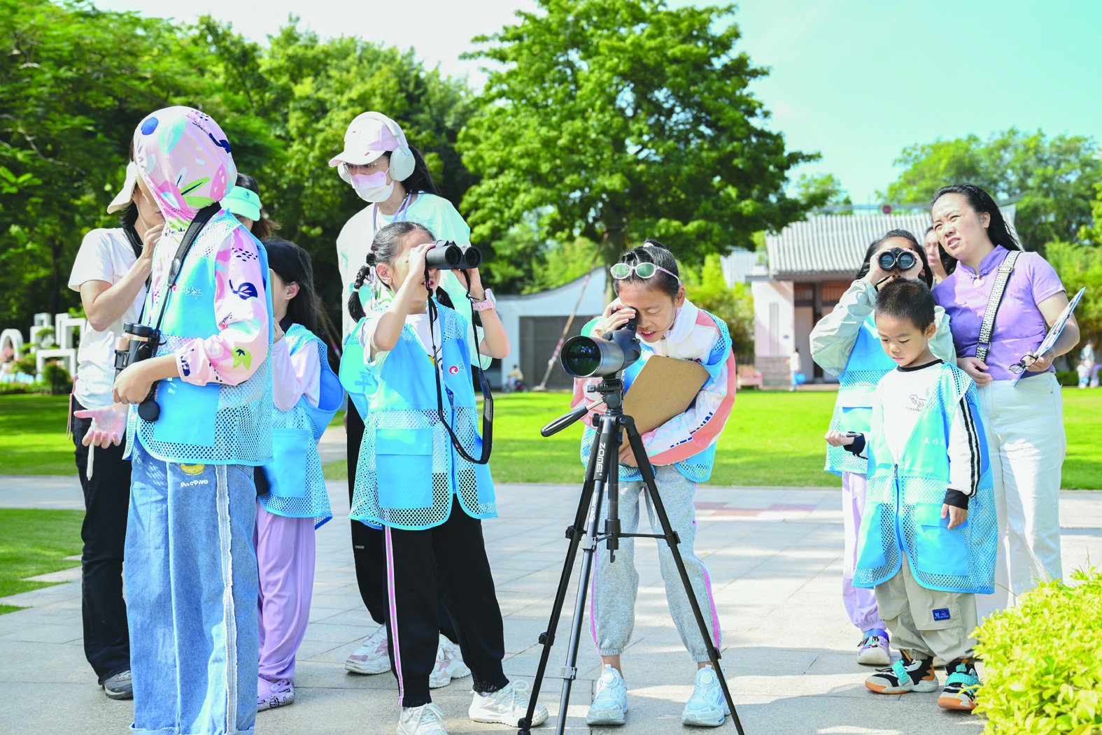 活动设置观鸟课堂、望远镜实操、鸟类侦探行动、感悟分享四大环节。老师带领孩子们沉浸式感受飞羽精灵。厦门市滨东小学、莲花小学等学校的孩子们踊跃参与,将“爱护野生动物就是守护未来”的环保理念植入童心。