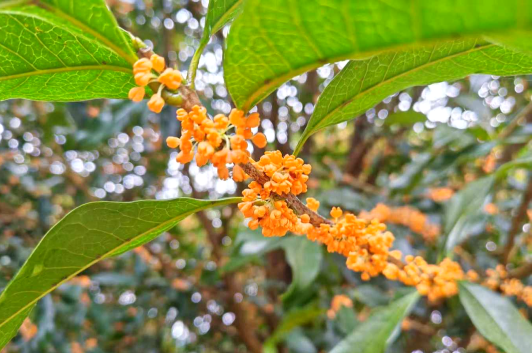 据丰达农庄管理人员介绍,今年的桂花是有记录以来开放最迟的一年。往年九月末十月初便已芬芳满园,而今年直到近期才迎来全面盛放。目前,桂花已进入最佳观赏期。一树树金桂在山野间舒展,将上莲的秋日装点得愈发绚烂。