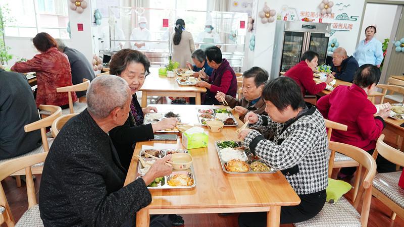 老人张美清刚打完饭,端着餐盘坐在餐桌边。“一个人在家,煮饭麻烦,平时总煮点面条对付。现在来这里吃饭,干净、方便、菜品口味好,而且还有很多伙伴。”她表示,自己天天都会来。