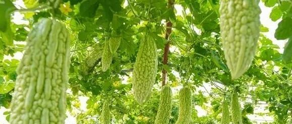 还未采摘的苦瓜在绿叶间若隐若现