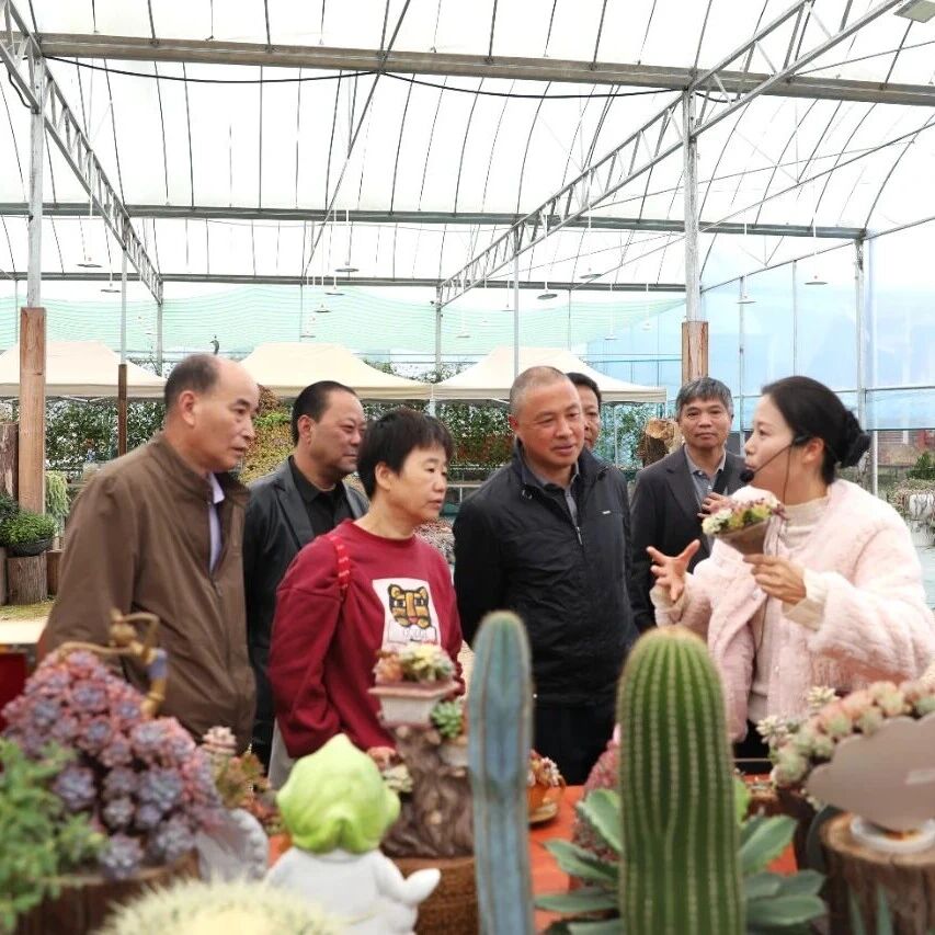 当天,乡村振兴特聘指导员们先后前往浦源镇、礼门乡、李墩镇、七步镇,实地考察溪坪村多肉庭院经济、上洋村花鲤小镇多肉馆、萌源村手工制硋非遗体验馆、常源村“古寨”文旅品牌打造、际头村高山蜜薯基地及八蒲村亲水乐园与蒲蒲文创园等由第二批特聘指导员牵头打造的特色项目。