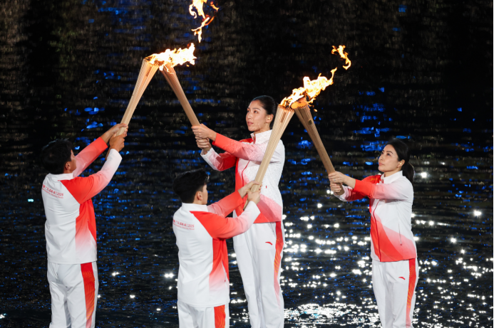 本报讯 (记者 肖榕)11月9日,第十五届全国运动会在广州奥体中心盛大开幕。作为历史上首次由粤港澳三地联合举办的综合性体育盛会,本届全运会汇聚了国内最顶尖的运动健儿与来自全国的关注。安踏作为本届全运会官方体育装备类合作伙伴,为赛事提供了全面的专业装备保障。在点燃主火炬的关键环节,火炬手身着安踏装备亮相,共同见证了全运会的隆重开幕。