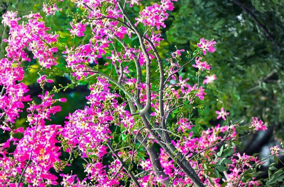 据了解,美丽异木棉因花型优美、花色艳丽,有着“美人树”的别称,是极具观赏性的秋季景观树种。目前,“美人树”已进入盛花期,花期可持续约一个月。