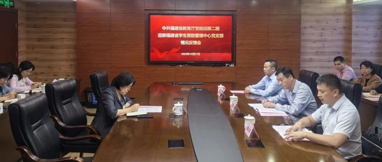 10月27日,中共福建省教育厅党组巡察二组向福建省学生资助管理中心党支部反馈巡察情况。厅党组巡察工作领导小组成员李建华同志主持召开向资助中心党支部书记李萍同志的反馈会议,传达了厅党组书记叶燊同志在听取2025年第一轮巡察工作情况汇报时的讲话精神,并对巡察整改提出要求。厅党组巡察二组组长康志荣同志分别向李萍同志和资助中心党支部成员反馈了巡察情况。李萍同志就做好巡察整改作表态讲话。