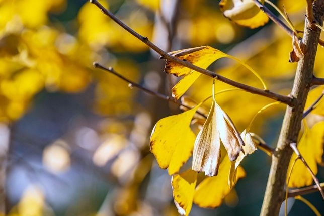 袅袅风吹,叶片颤动似蝴蝶振翅,婆娑着滑落出一道道金色弧线的落叶,铺在地上、躺在叶里,拾起一片,可以回望凝结它身上的漫长时光。