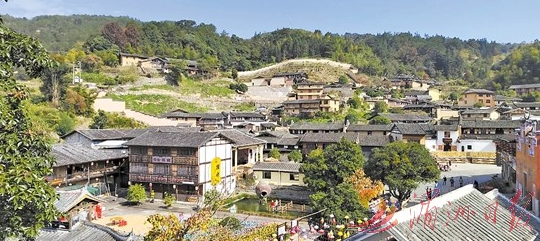 蓝天白云下,一座古村落静静地匍匐在青翠山冈下,像一帧静止的画面。泥墙黛瓦老厝鳞次栉比,让一个古村落一目了然,似乎可以对它的前世今生一览无余,随之而来的是一种美好的诗意呈现。