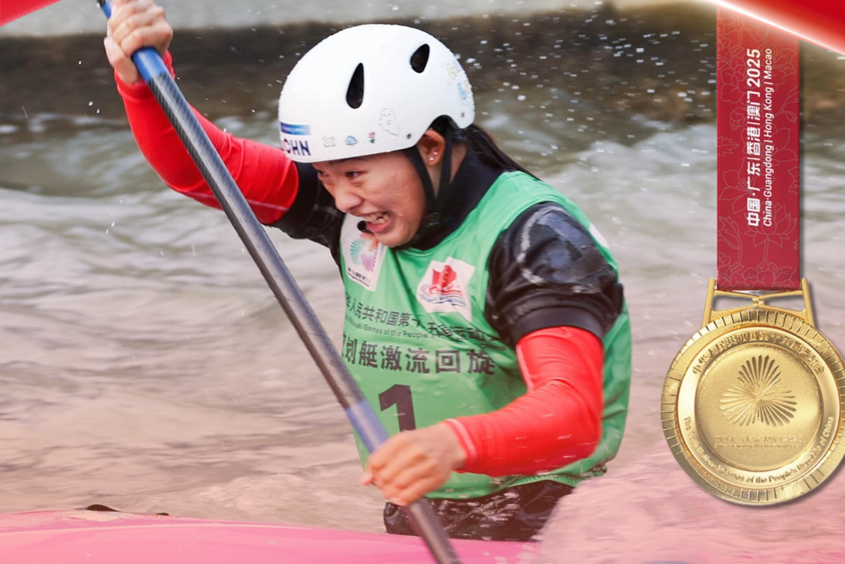 皮划艇激流回旋女子单人皮艇项目比赛中