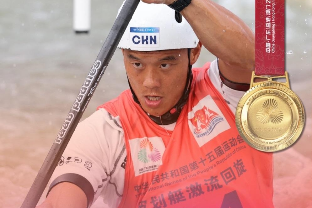 在第十五届全运会皮划艇激流回旋