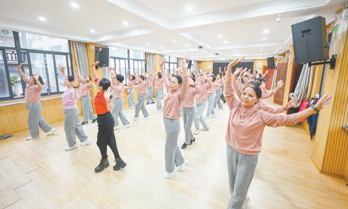 舞蹈教室内也是活力满满。伴随着欢快旋律,学员们身姿舒展、舞步轻快。“基础班从简单曲目入手,提高班就挑战热门流行舞,大家学得快也易接受。”广场舞班老师高爱玲介绍,学校期末还会组织才艺展演,“核心就是让大家在这里学得开心、玩得尽兴”。