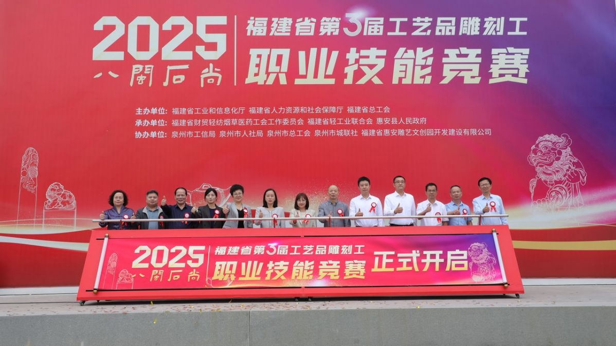 本届技能竞赛由福建省工信厅、福建省人社厅、福建省总工会联合主办,惠安县人民政府、福建省财贸轻纺烟草医药工会工作委员会、福建省轻工业联合会共同承办;泉州市工信局、泉州市人社局、泉州市总工会、泉州市城联社、泉州市元璞雕刻艺术有限公司及福建省惠安雕艺文创园开发建设有限公司共同协办。本届雕刻工职业技能竞赛将持续至11月16日。
