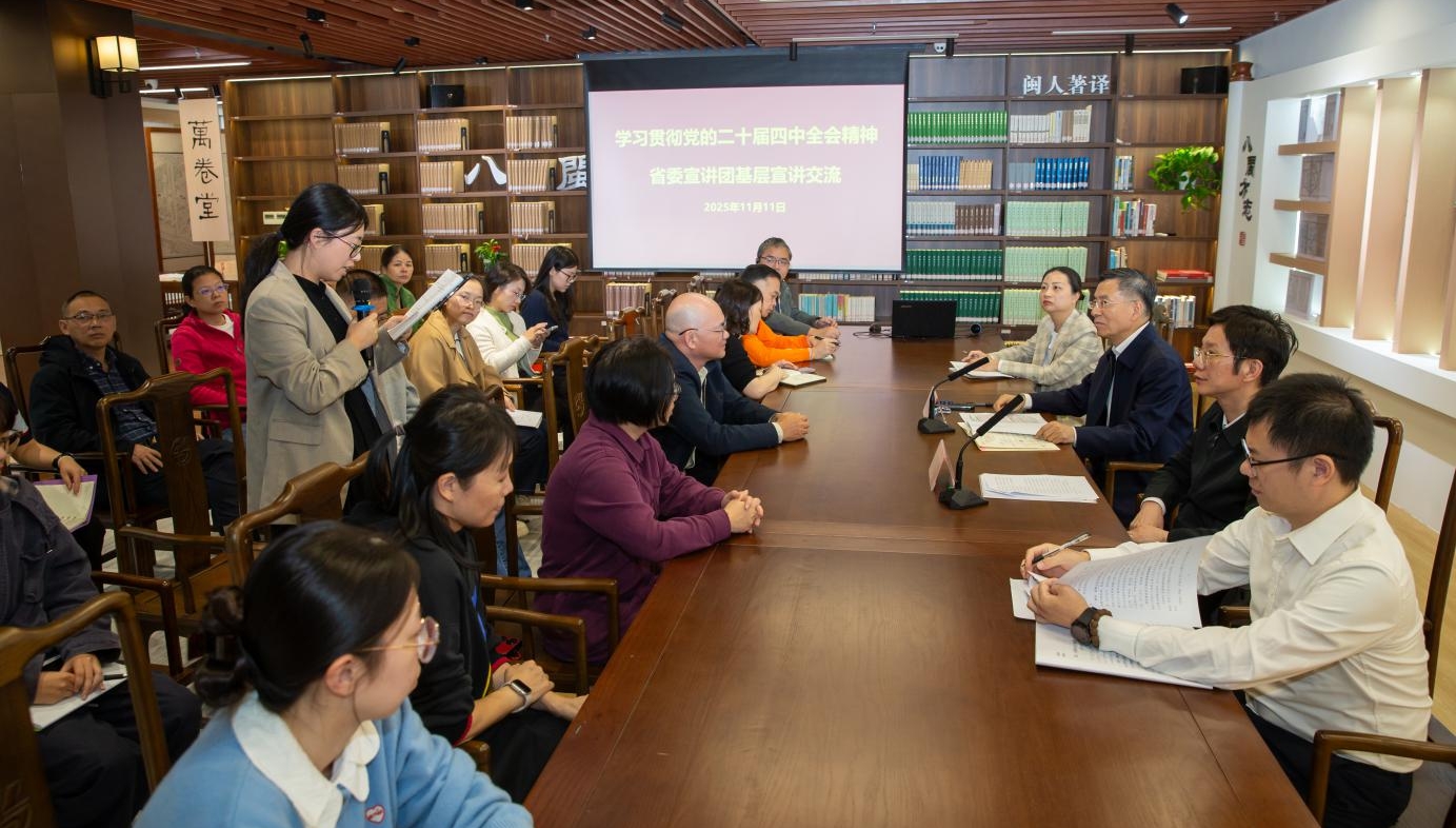 11月11日,学习贯彻党的二十届四中全会精神省委宣讲团赴省社科联开展宣讲。省委宣讲团成员、省政府参事、福建社会科学院原党组书记陈祥健作宣讲报告。报告会后,陈祥健赴省图书馆,与省社科普及基地工作者及读者代表围绕全会精神开展面对面交流,并就公共文化服务建设、社科强省战略等有关问题现场答疑。