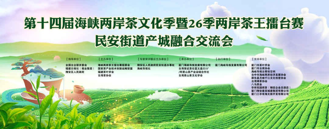 据悉,本届茶文化季由海峡两岸茶王擂台赛组委会、国家茶产业技术创新战略联盟等联合主办,翔安区人民政府民安街道办事处、海峡导报社等联合承办专家审评环节。活动期间还联动开展企业党建、产业对接、台胞交流等系列配套活动,持续推动两岸茶产业资源互补、优势叠加,助力民安街道打造“朋友式”企业服务典范。