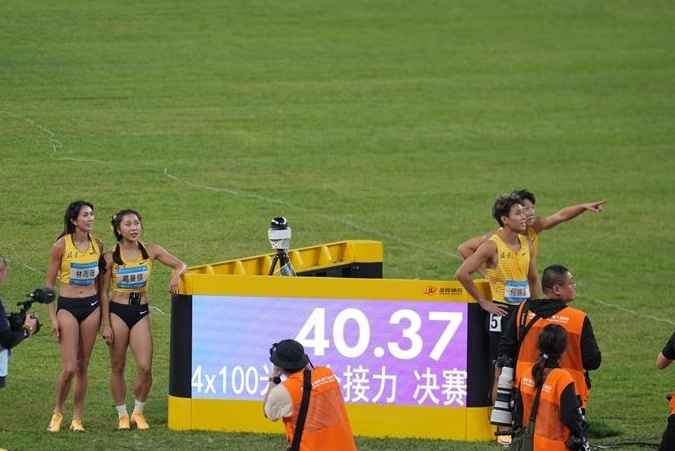 15日,福州市运动员何锦櫶、林雨薇、肖远鹏在第十五届全国运动会田径4×100米混合接力比赛中与队友葛曼棋携手夺得冠军,这是福州市运动员在本届全运会上夺得的第五枚金牌。